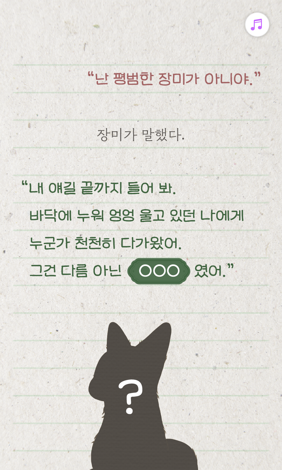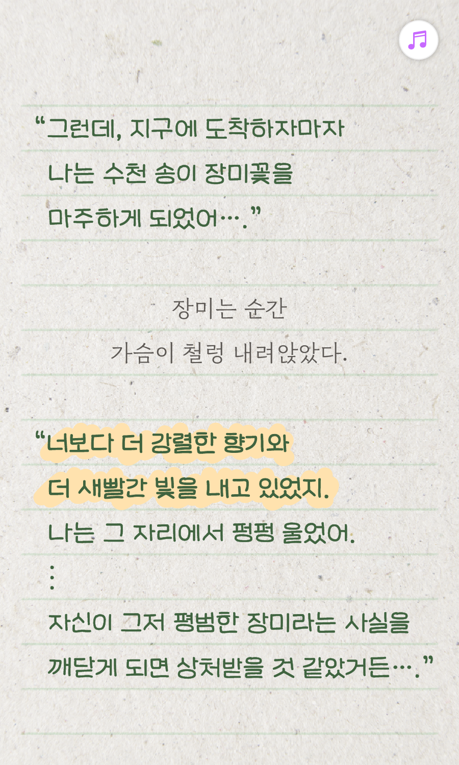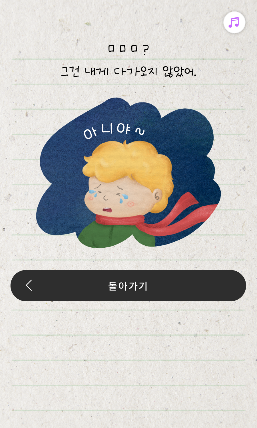 어린왕자의 원작을 바탕으로 제작하였으나, 등장인물 등 세부 내용은 원작과 다소 차이가 있을 수 있습니다. ▶ <어린왕자를 사랑한 장미> 답안 페이지입니다. 비밀번호는 4자리 숫자로, <수천 송이 장미> 미션 [ㅅㅁㅇㅇ] 퀘스트 버튼을 누르면 확인할 수 있습니다. https://rwd.to/b612 |